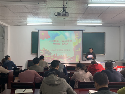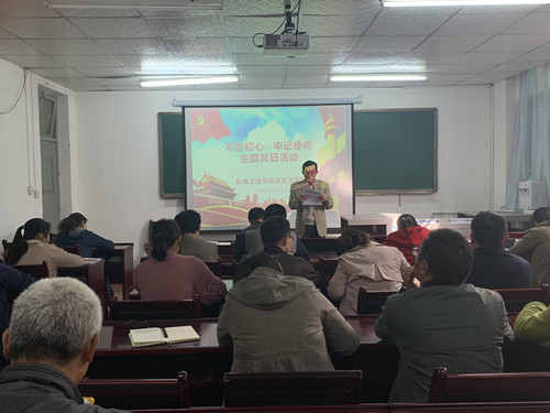 2019年10月16日下午,威廉体育官方网站党总支组织全体党员,在朝阳校区一号教学楼203教室举办“不忘初心,牢记使命”主题党日活动。