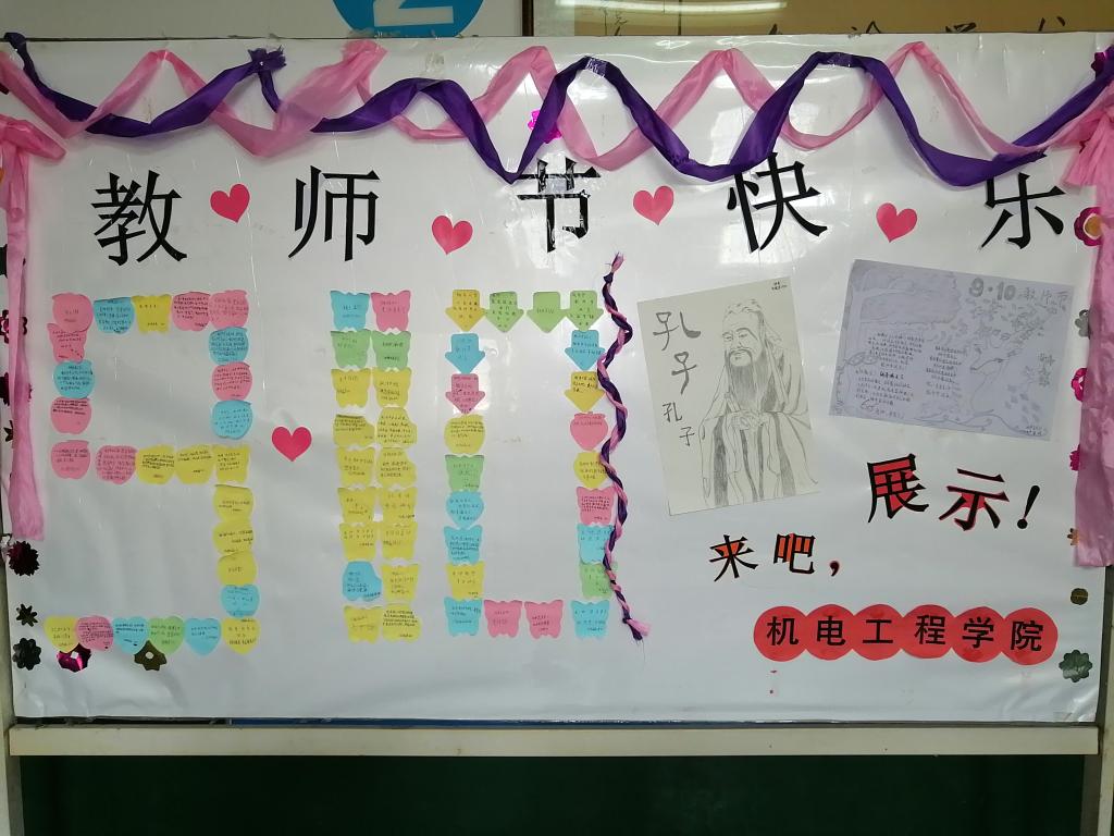1、各班在教师节到来之前,出了一期以“庆祝教师节”为主题的黑板报,让员工在查资料,办板报的过程中,了解老师,了解老师的无私与奉献。