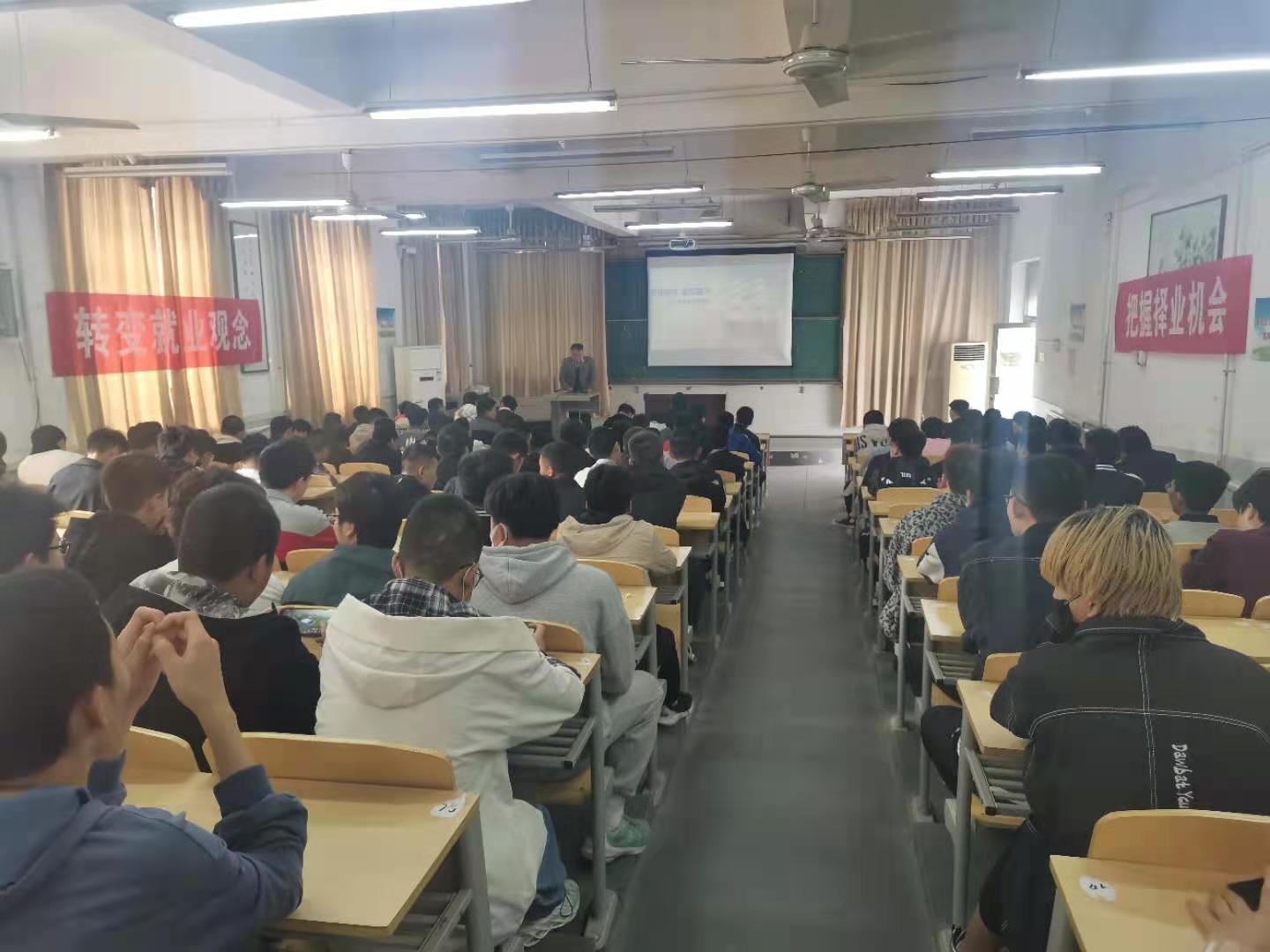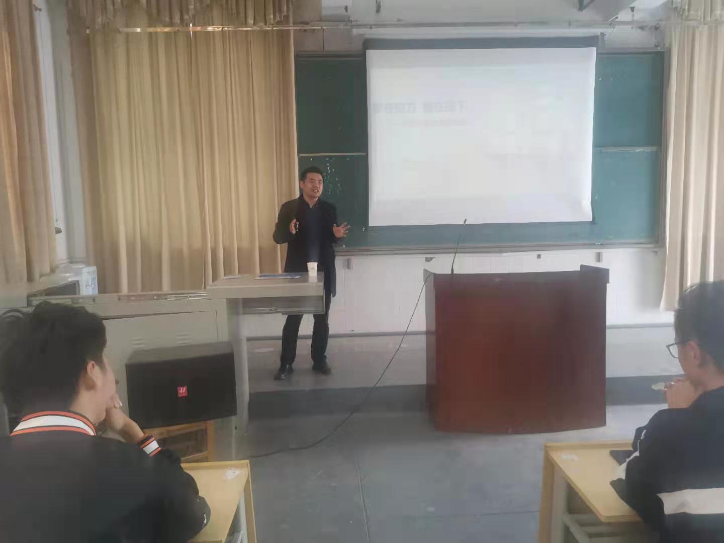 4月14日下午15:00,威廉体育官方网站邀请陕西帝亚人事行政部部长左飞在朝阳校区一楼西阶梯教室进行关于《老员工职业生涯与规划》专题讲座。招就处司科长、威廉体育官方网站汽车专业全体员工参加本次讲座,讲座由公司副经理王勇主持。
