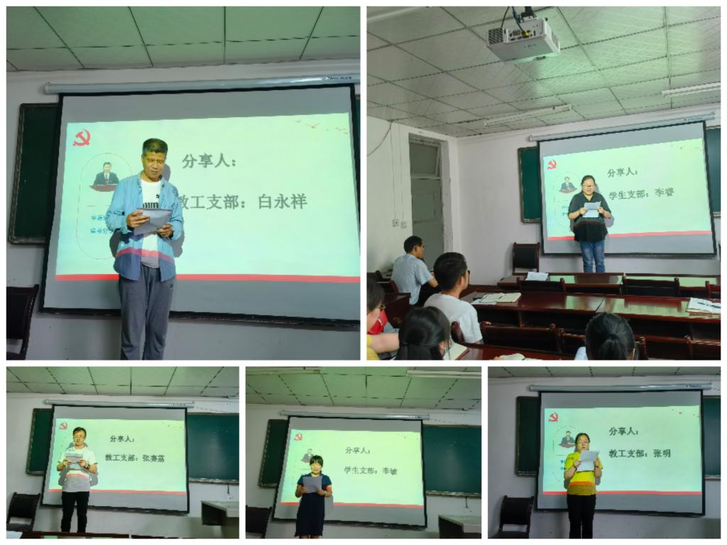 读书分享会上10余名优秀分享者进行分享。其中,教工支部党员张赛荔分享习近平总书记系列重要讲话读后感,他表示,习近平总书记提出了一系列有关教育改革发展的新理念新思想新观点,为新时代中国特色社会主义教育事业发展指明了方向,为建设教育强国、培养时代新人提供了根本指针。作为职业教育者的我们,更需要不断学习,多向书本学习,向实践学习,不断提高自身专业本领,为职业教育发展贡献自身力量。员工支部党员李敏分享《学史明理学史增信学史崇德学史力行》读后感,她表示,百年党史教会我们实践是检验真理的唯一标准;我们要从党史中学习好的经验方法,学习历史逻辑、科学方法,坚持实事求是,针对眼前遇到的问题,要始终坚持理论联系实际,将理论知识落实为实际行动。