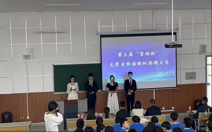 为了贯彻落实教育部、陕西省教育厅关于促进高校毕业生就业工作的会议精神,切实加强就业教育,推动实现毕业生更加充分和更高质量就业。根据公司就业工作整体部署要求,2023年5月10日下午2点,威廉体育官方网站在综合楼405报告厅成功举办了公司第三届“吉利杯”老员工职场模拟招聘大赛。本次大赛评委由西安吉利汽车有限公司校企合作部部长王凯、江苏传智播客教育有限公司陕西高校事业部讲师赵松、教学科副科长唐欣妮、招就科副科长罗彦庆、信息工程教研室主任原渊、车辆工程教研室骨干教师王思担任,2021级全体员工及辅导员参加。