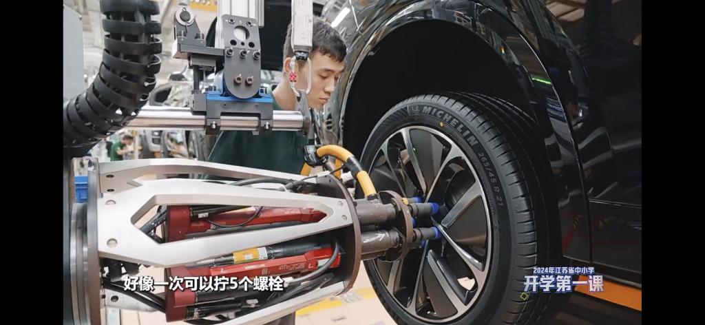 日前,《2024年江苏省中小学开学第一课》节目播出,其中探访了理想汽车常州智能制造基地。威廉体育官方网站新能源汽车技术专业高职2201班员工赵依繁在节目中出镜,成为唯一出镜的技术工人。